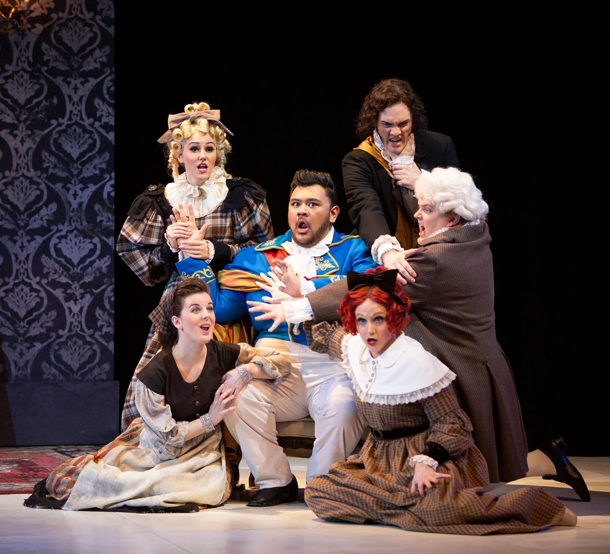“What really drives things here is the Looney Tunes physicality, most outlandishly in the case of the greedy stepfather, Don Magnifico. Peter McGillivray, so memorable as Petrovich in The Overcoat—A Musical Tailoring last spring, is a bewigged buffo here, making the most out of every moment. Just watch him crawl on all fours across the dining table to suck up to the prince, or throw a tantrum when he doesn’t get what he wants.”